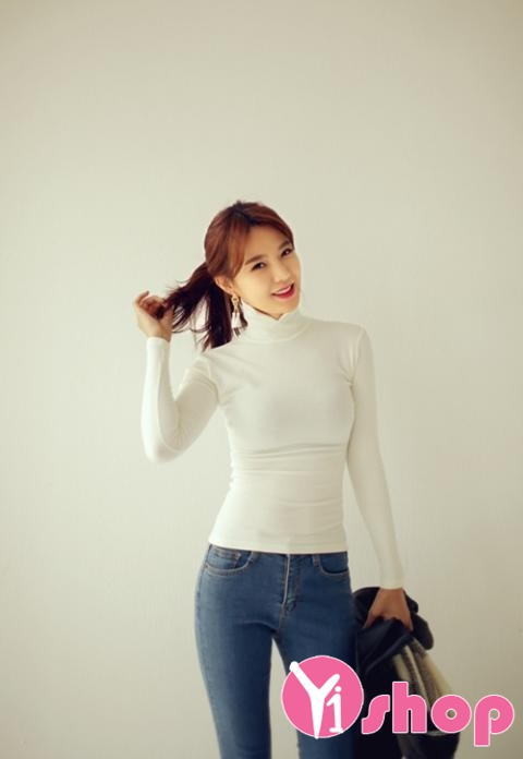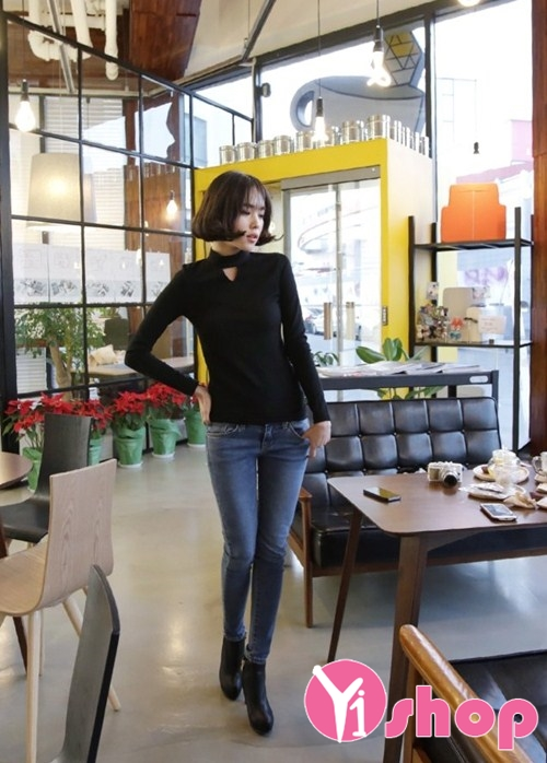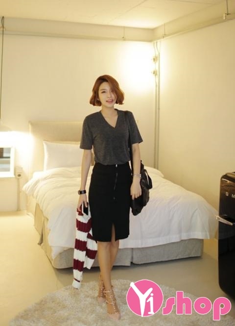 Với những bạn hơi tròn áo thun màu đen sẽ giúp bạn trở nên thanh mảnh hơn. Chiếc áo thun đen sẽ giúp các cô gái không còn lo lắng về vòng eo “bánh mì”