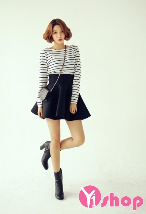 Sự kết hợp giữa áo thun và chân váy xoe đem lại cho bạn nữ vẻ trẻ trung, nữ tính