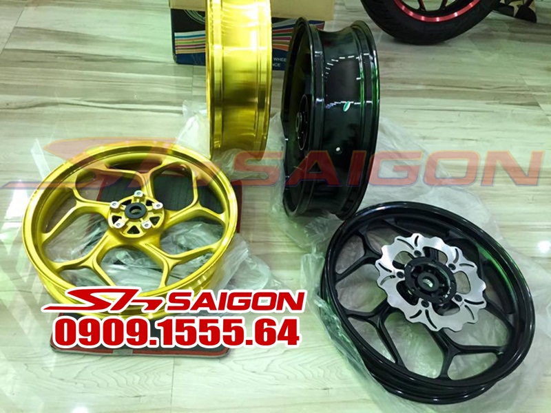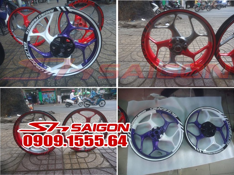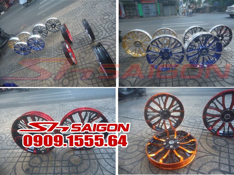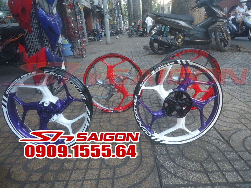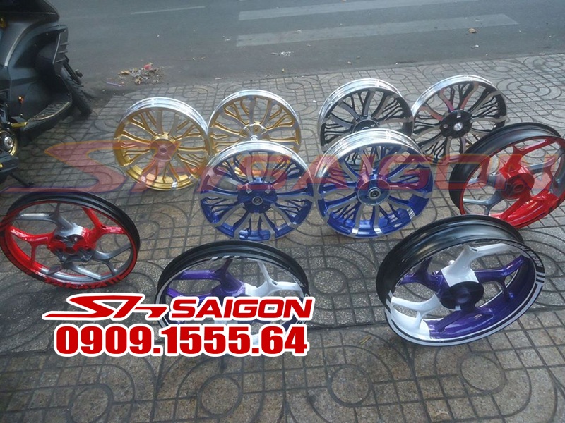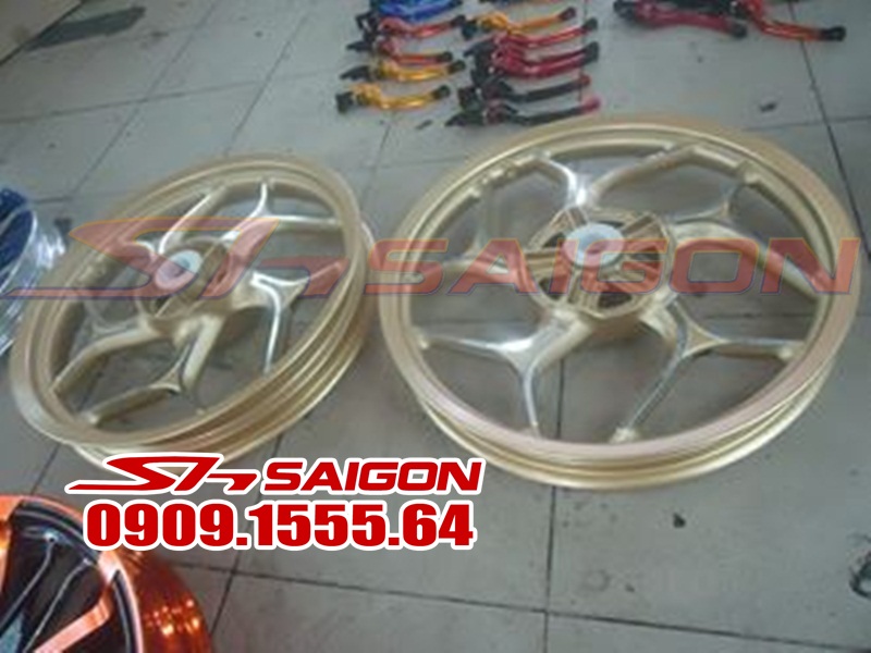 SH Sài Gòn chuyên bán phân phối sỉ và lẻ Mâm độ Asio cho xe Yamaha Exciter  135i 150i, Sirius,Jupiter,.. hàng Made in Thailand, chất liệu CNC cao cấp nguyên khối chất lượng cao, bảo hành 2 năm, đủ màu sắc theo xe : x.anh dương GP, trắng, đỏ ,đen, vàng đồng,.. nhận sơn phối màu mâm Asio theo yêu cầu khách hàng.