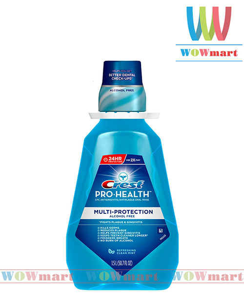 Công dụng chính của Crest Pro Health Multi-Protection là loại bỏ vi khuẩn gây hại cho răng, ngăn ngừa mảng bám gây vàng răng, bảo vệ hàm răng chắc khỏe cho bạn. Bên cạnh đó, nước súc miệng dạng này cũng có tính năng chống hôi miệng và không gây cảm giác cay hay bỏng rác. Hiệu quả kéo dài đến 12h