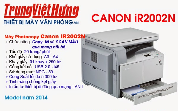 Canon iR 2002N dòng máy mới được Canon đưa ra thị trường nhằm cạnh tranh với những model tiền nhiêm, khi được trang bị đầy đủ các tính ưu việt. Bạn sẽ hài lòng với những gì mà chiếc máy nhỏ nhắn này mang lại, bạn sẽ làm được nhiều hơn nhưng lại thao tác ít hơn nhờ một loạt các tính năng tiên tiến được tích hợp sẵn như: cổng kết nối mạng, Quét từ xa, In trực tiếp từ thiết bị di động, giúp bạn tiết kiệm thời gian và điện năng tiêu thụ. Máy được trang bị các tùy chọn chuyên nghiệp cùng với thiết kế nhỏ gọn giúp giải phóng nhiều không gian tạo khoảng trống để bạn tận dụng nhiều công việc cùng một lúc và hỗ trợ nhiều kích thước giấy khác nhau. Máy photocopy Canon iR 2002N có thể in theo tiêu chuẩn với khổ giấy A3, tốc độ in đen trắng lên tới 22 trang/phút giúp công việc của bạn được cải thiện va đáp ứng mọi nhu cầu in ấn của bạn. Là một thết bị làm việc đa chức năng có kết nối mạng: sao chụp, in, quét màu.Tốc độ làm việc: 22 trang/phút Thời gian khởi động: 7,9 giây Tính năng chụp thẻ ID và kết hợp nhiều tài liệu trên một trang giấy.