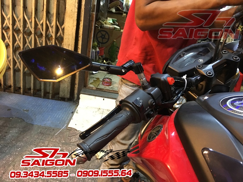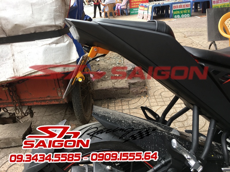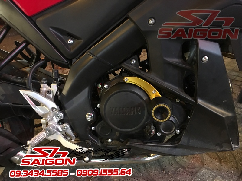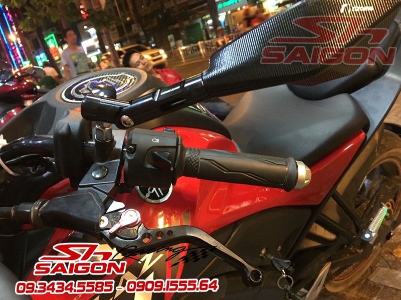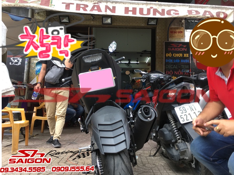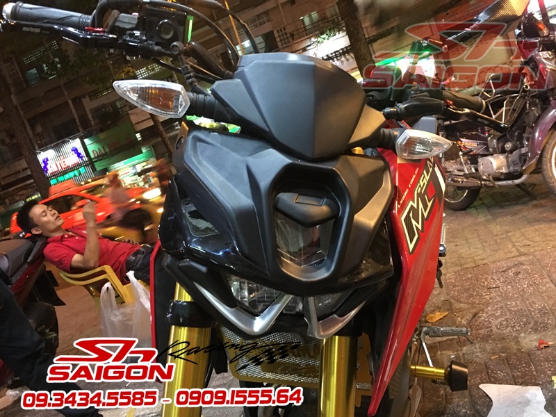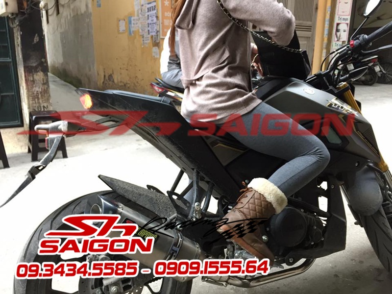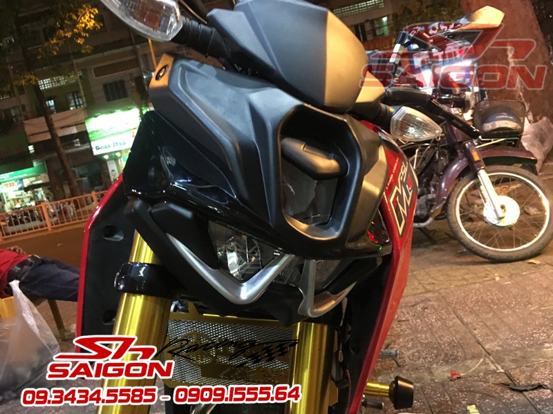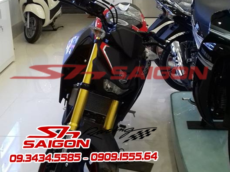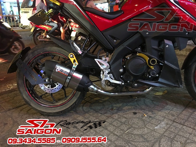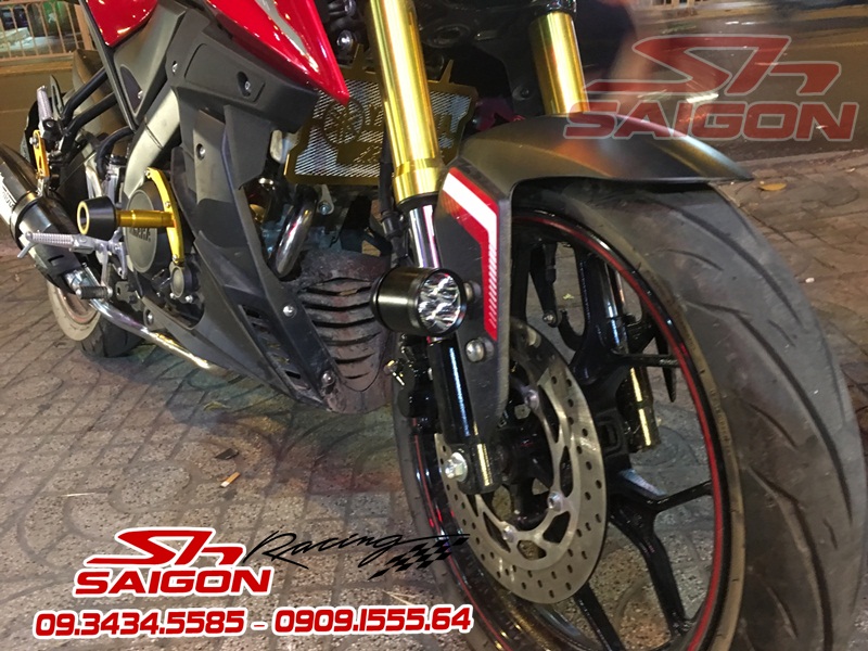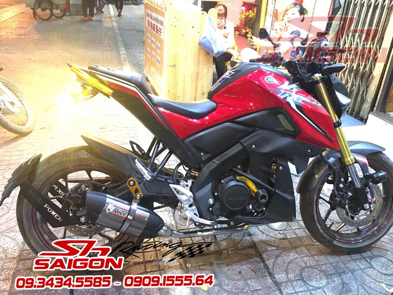 Cặp mâm được sơn màu xanh cùng tông xe,dĩa trước được thay bằng dĩa Brembo,gắn chống đổ lốc máy,che két nước,số gãy cnc và pô Akrapovic