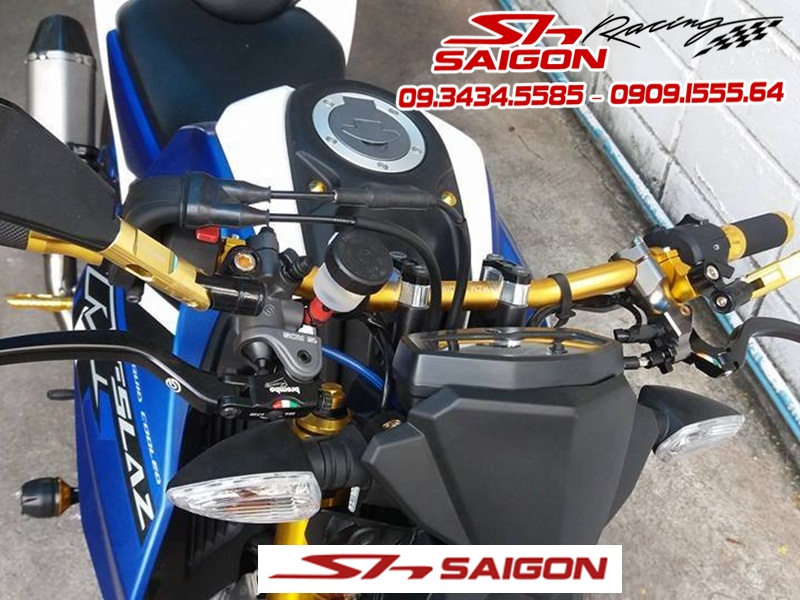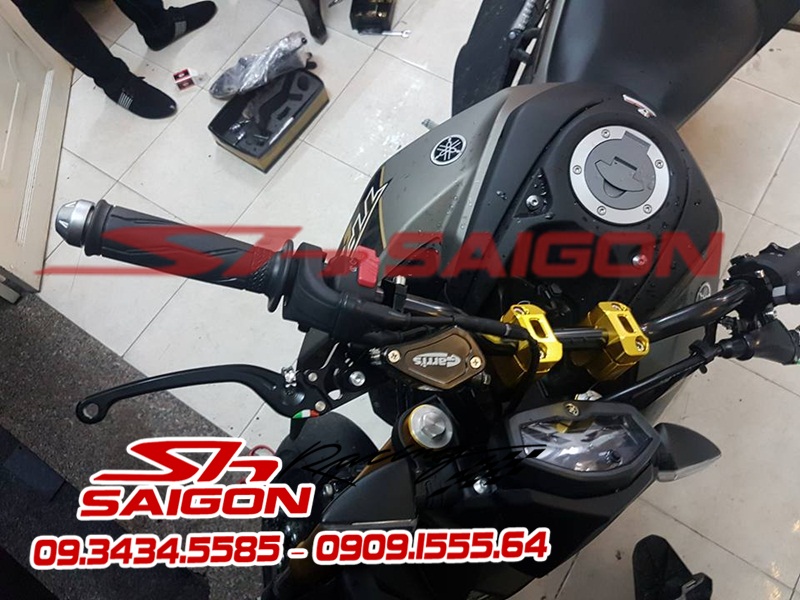 Ghi đông nhôm vàng cùng tông,cặp tay thắng tay côn Brembo